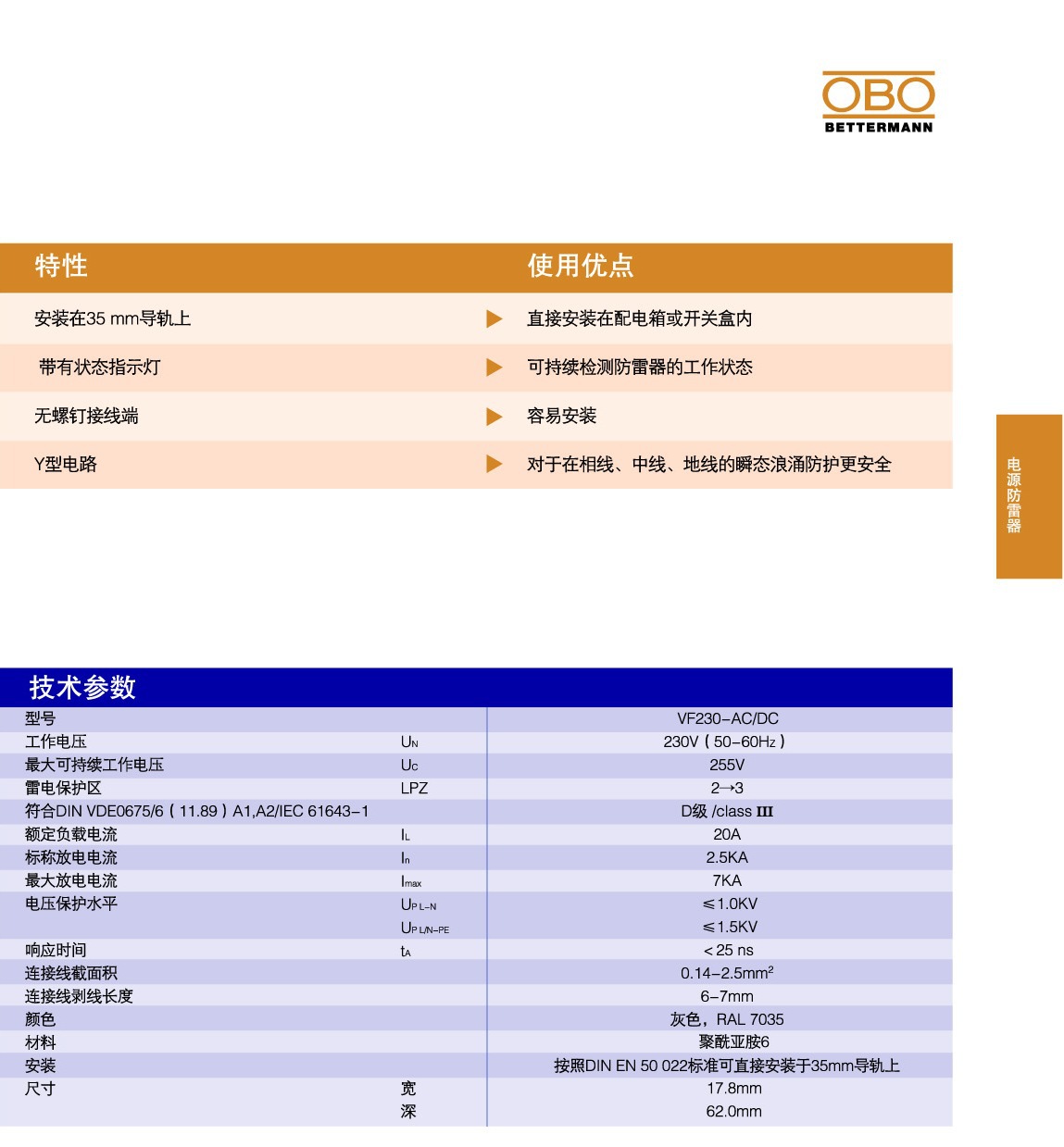供应德国欧宝OBO原装三相电源避雷器C级避雷器V20-C/3+NPE