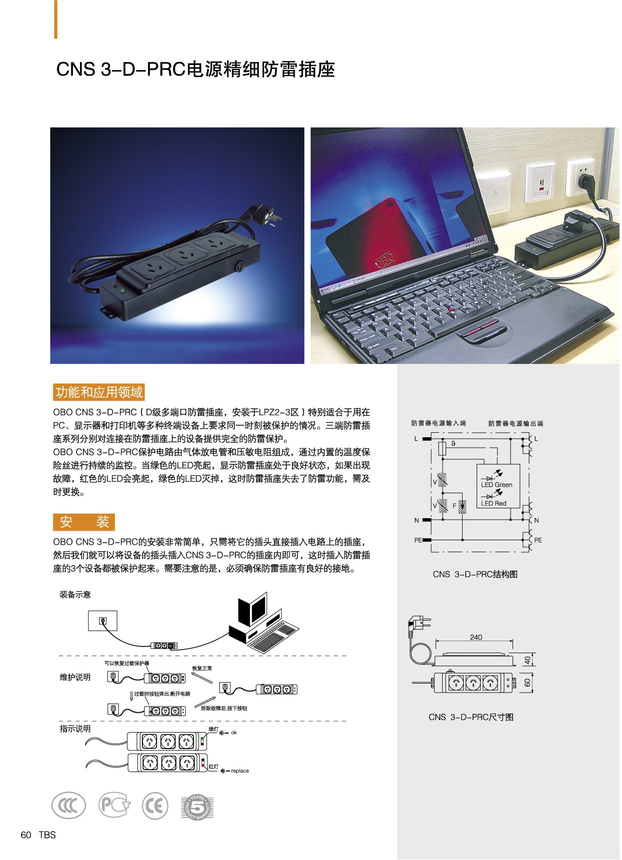 供应德国欧宝OBO原装CNS 3-D-PRC 电源精细防雷插座